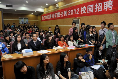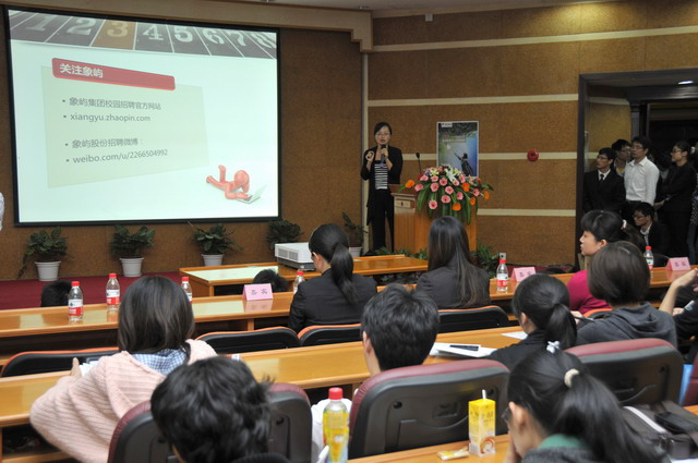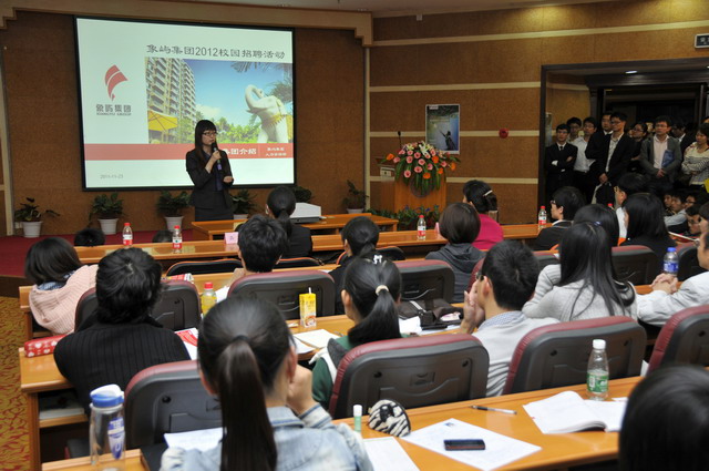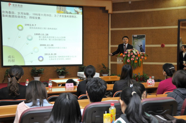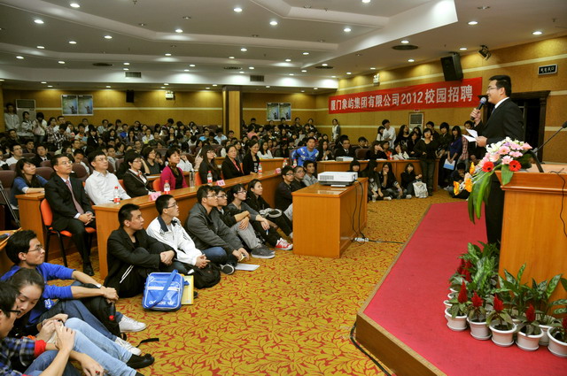 2012年象嶼集團(tuán)全國(guó)校園招聘首場(chǎng)宣講會(huì)于11月23日晚在廈門大學(xué)拉開(kāi)帷幕。集團(tuán)人力資源總監(jiān)林志勇、象嶼股份人力資源部經(jīng)理林焱為同學(xué)們進(jìn)行了精彩的宣講并回答了同學(xué)們現(xiàn)場(chǎng)的提問(wèn),鼓勵(lì)廈大的優(yōu)秀學(xué)子們加入到象嶼的大家庭。據(jù)悉,此次宣講會(huì)吸引了近500位應(yīng)屆生參加,場(chǎng)面火爆,提問(wèn)環(huán)節(jié)積極踴躍,會(huì)后現(xiàn)場(chǎng)收到簡(jiǎn)歷近500 份。