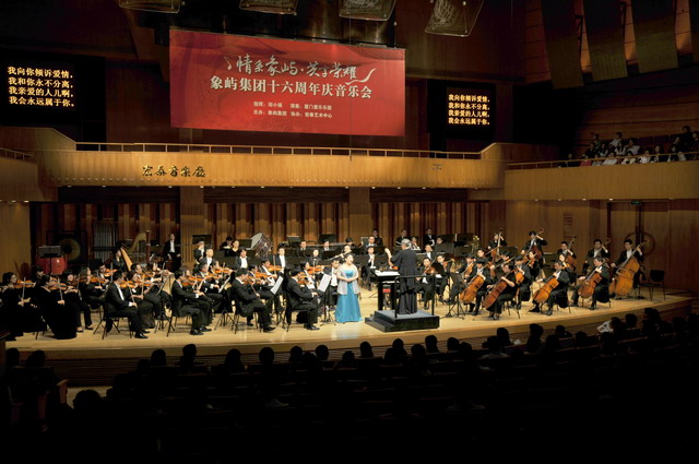 從1995年到2011年,象嶼集團(tuán)走過了整整十六年。十六年,象嶼集團(tuán)成就夢想,發(fā)展成為中國500強(qiáng)企業(yè),在福建省企業(yè)集團(tuán)中排名第五、在廈門企業(yè)中排名第四。2011年象嶼股份在上交所榮耀上市。在紀(jì)念象嶼集團(tuán)成立十六周年的特殊時刻,11月27日,象嶼員工及家人歡聚宏泰藝術(shù)中心,一同享受由著名指揮鄭小瑛女士率廈門愛樂樂團(tuán)帶來的精彩的音樂盛宴。