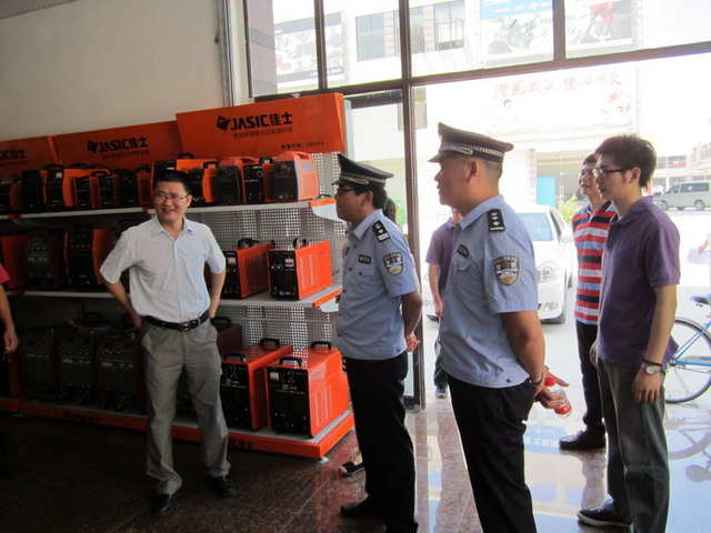 民警認(rèn)真對商戶提出的安全生產(chǎn)問題進(jìn)行解答