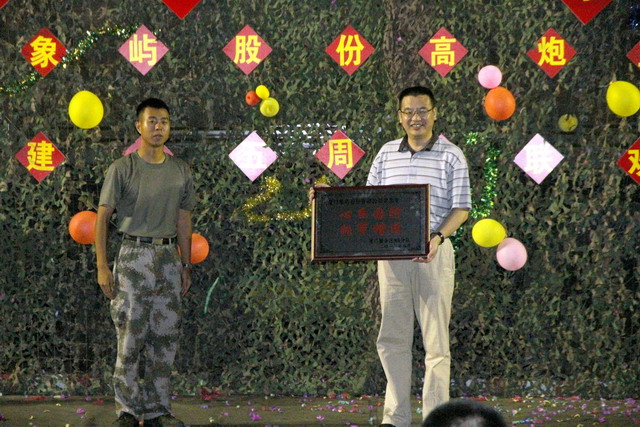 經(jīng)過一場緊張激烈的籃球友誼賽后,晚會正式開始。鄧啟東總經(jīng)理代表公司向三連贈送了慰問品,高炮三連指導(dǎo)員發(fā)表講話提出三連在象嶼股份的攜手同行中部隊現(xiàn)代化建設(shè)得到持續(xù)發(fā)展,同時感謝公司多年的支持并回贈“心系國防,擁軍模范”牌匾。象嶼股份黨總支副書記湯開宏同志回顧了雙方共建十五年的歷史并總結(jié)共建以來象嶼股份在高炮三連敢打敢拼精神的鼓舞、帶動下的不斷發(fā)展壯大,最后對共建關(guān)系提出美好希冀,期望雙方在繼續(xù)共建中不斷共同促進。