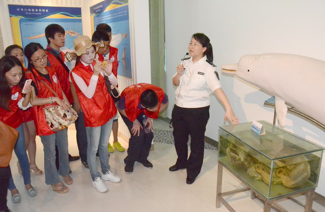 活動中,志愿者們都很激動,紛紛拿出手機(jī)和心愛的海豚拍照合影,大家通過喂食和撫觸,與海豚親密互動,真真切切地體會到人與海洋生活和諧共處的那種愉悅和幸福。隨后在科普館內(nèi),海洋漁業(yè)局的講解員為志愿者們詳細(xì)介紹了關(guān)于中華白海豚和海洋保護(hù)的相關(guān)知識,志愿者們認(rèn)真傾聽,踴躍提問,與講解員展開了熱烈的互動,收獲良多。