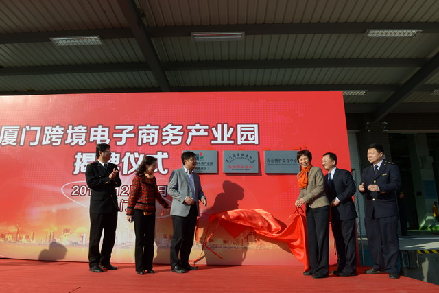 市委常委、統(tǒng)戰(zhàn)部部長(zhǎng)黃菱,副市長(zhǎng)張燦民為廈門(mén)跨境電子商務(wù)產(chǎn)業(yè)園揭牌,并見(jiàn)證了跨境電商出口第一單貨物上線(xiàn)測(cè)試。
