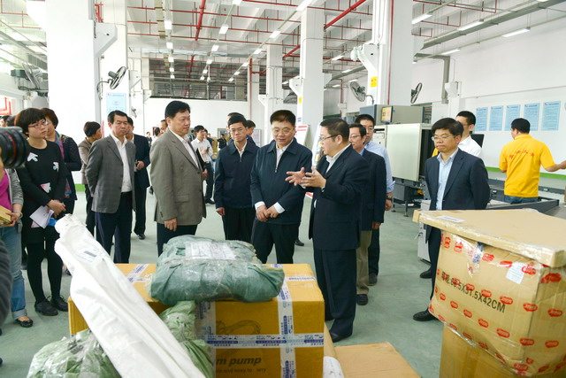 調(diào)研現(xiàn)場(chǎng),王蒙徽書(shū)記等市領(lǐng)導(dǎo)聽(tīng)取了王龍雛董事長(zhǎng)、陳方副總裁對(duì)廈門跨境電商產(chǎn)業(yè)園情況的介紹,察看了作業(yè)現(xiàn)場(chǎng)。王書(shū)記在調(diào)研過(guò)程中對(duì)象嶼集團(tuán)在自貿(mào)試驗(yàn)區(qū)推動(dòng)過(guò)程中邊摸索、邊推動(dòng),敢于先行先試,開(kāi)拓海運(yùn)快件物流新通路,構(gòu)建廈門跨境電商產(chǎn)業(yè)園的新思維、新模式給予了肯定,對(duì)海關(guān)、國(guó)檢給予的鼎力合作支持表示感謝。