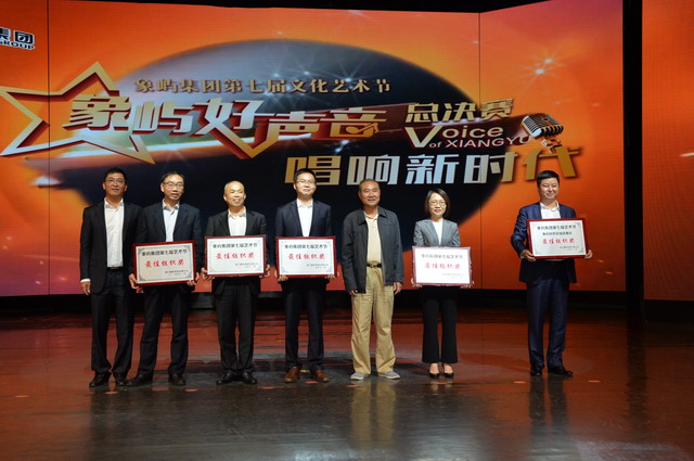 現(xiàn)場(chǎng)除了為象嶼好聲音選手們頒獎(jiǎng)外,還為象嶼農(nóng)產(chǎn)頒發(fā)了象嶼好聲音海選賽區(qū)“最佳組織獎(jiǎng)”,為象嶼金控工會(huì)、象嶼速傳供應(yīng)鏈、象嶼自貿(mào)區(qū)開發(fā)公司、福建象嶼4家公司頒發(fā)象嶼集團(tuán)第七屆文化藝術(shù)節(jié)“最佳組織獎(jiǎng)”。