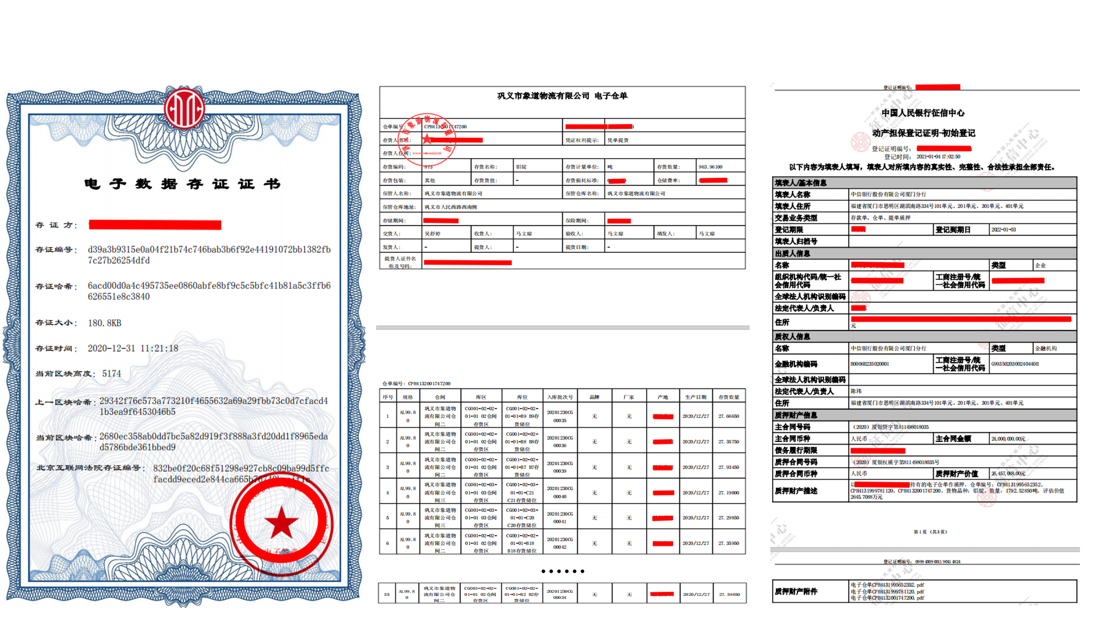 ▲ 區(qū)塊鏈存證、電子倉單及中登網(wǎng)質(zhì)押登記