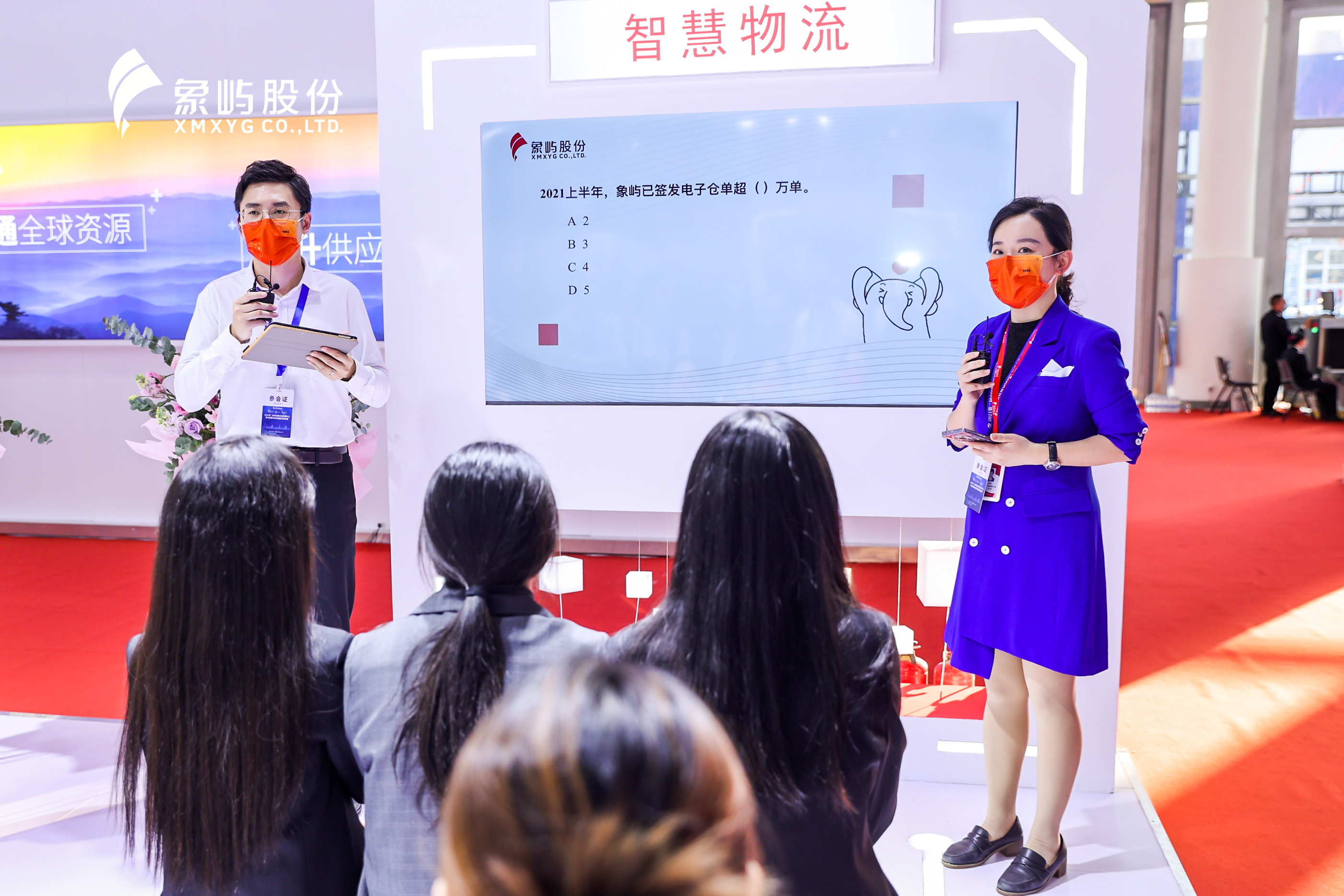 中物聯(lián)、廈門政府、自貿(mào)委、股份公司領(lǐng)導等駐足觀看,并在現(xiàn)場就象嶼股份的供應鏈創(chuàng)新與應用成果展開交流。
