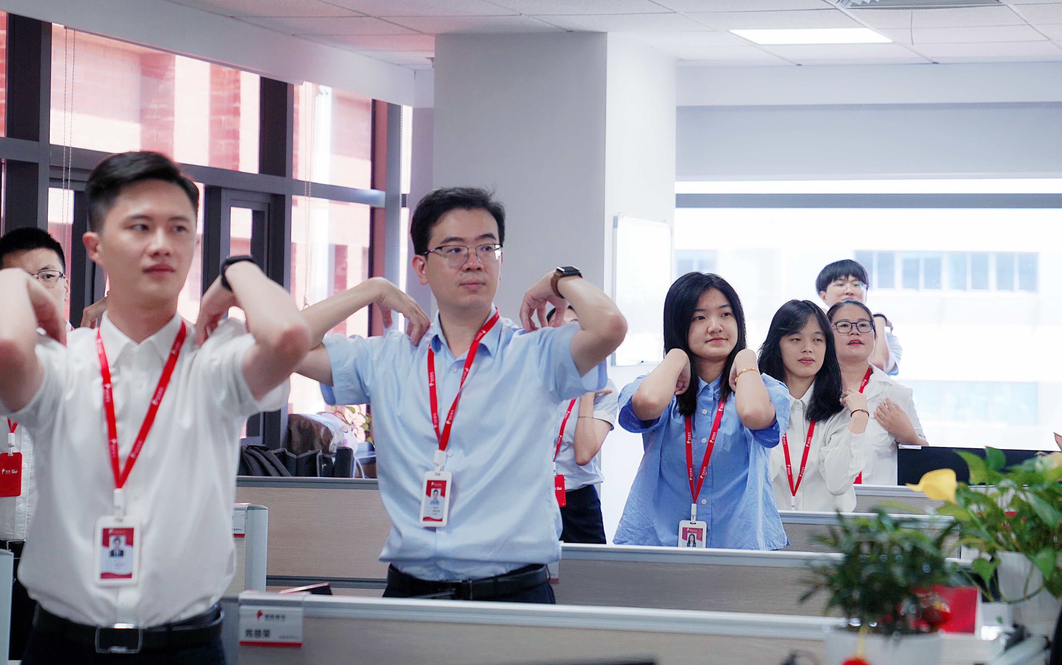 簡(jiǎn)單易學(xué)的工間操緩解了大家的工作壓力,放松了身心,起到了良好的鍛煉效果。通過(guò)短短幾分鐘的運(yùn)動(dòng)時(shí)間,調(diào)動(dòng)了大家參與全民健身的積極性,提振精氣神,讓大家“元?dú)鉂M滿”投入到后續(xù)的工作當(dāng)中!簡(jiǎn)單有效的健身方式,你還在等什么?趕緊一起來(lái)跳工間操吧!
